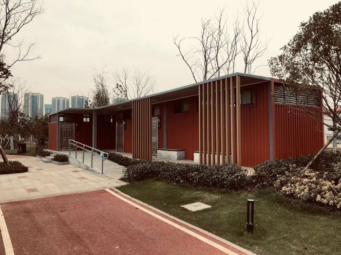拼裝廁所;在廠里做好各個廁所部件,再到現(xiàn)場組裝在一齊,適合不易運輸?shù)拇笮蛶_@座箱式廁所,女廁5個蹲位內(nèi)配工具間,男廁2個蹲位+2小便斗,第三衛(wèi)生間由殘疾馬桶、助力洗手盆和兒童馬桶、兒童洗手盆外加嬰兒臺等設(shè)施。廁所前后有窗,通風采光,前部走廊裝有屋檐,防雨防曬。此廁所位于公路綠道邊,整體大氣,功能齊全,造型美觀,是一道難得的靚麗景觀!