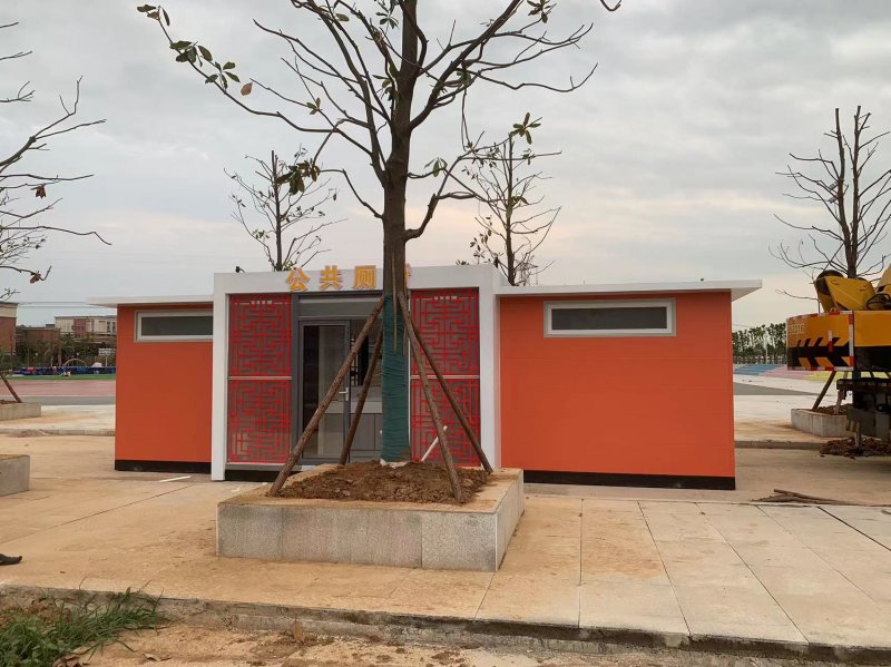 拼裝廁所;在廠里做好各個廁所部件,再到現(xiàn)場組裝在一齊,適合不易運輸?shù)拇笮蛶_@座箱式廁所,女廁5個蹲位內(nèi)配工具間,男廁2個蹲位+2小便斗,第三衛(wèi)生間由殘疾馬桶、助力洗手盆和兒童馬桶、兒童洗手盆外加嬰兒臺等設(shè)施。廁所前后有窗,通風采光,前部走廊裝有屋檐,防雨防曬。此廁所位于公路綠道邊,整體大氣,功能齊全,造型美觀,是一道難得的靚麗景觀!